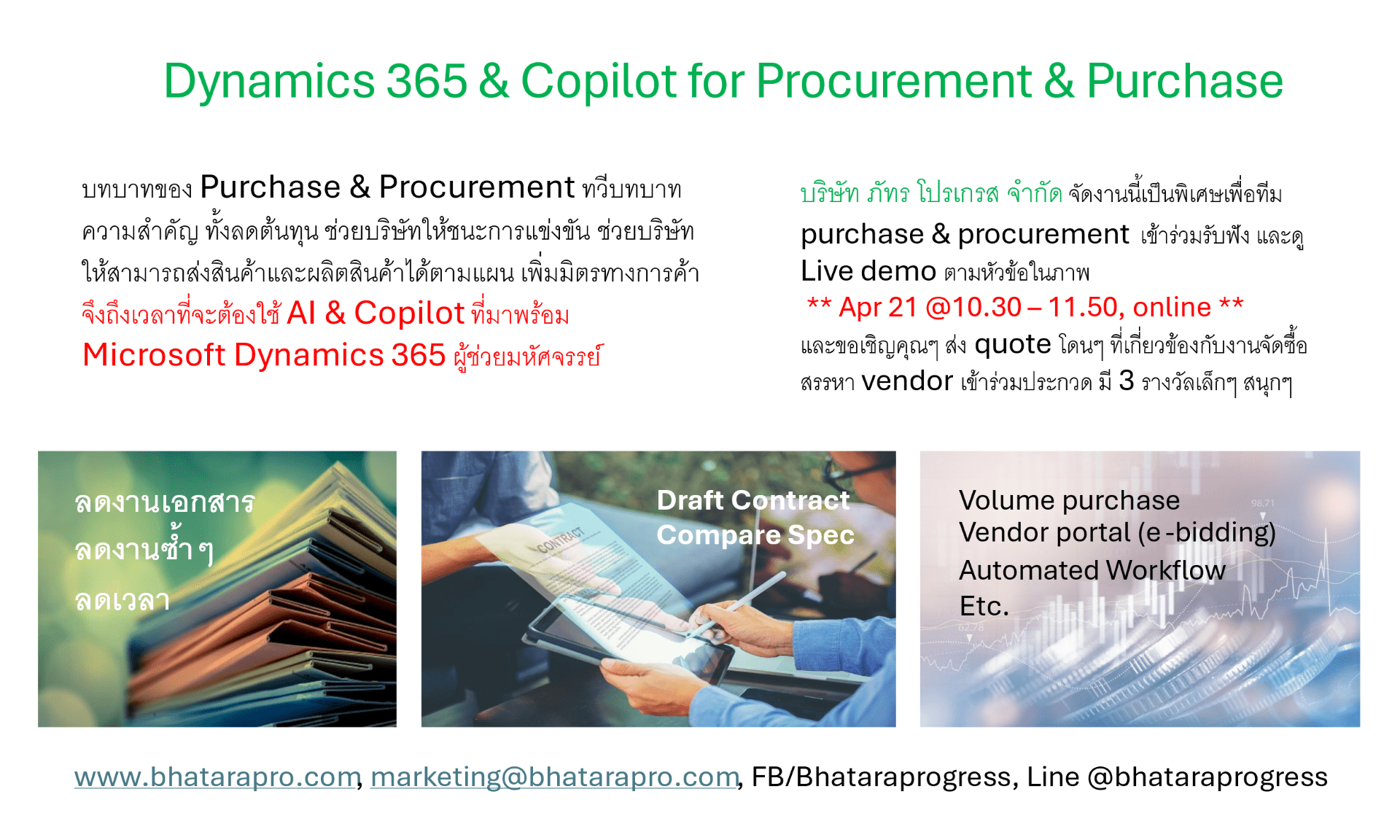Seminar online Dynamics 365 & Copilot for Procurement & Purchase 21 Apr 25