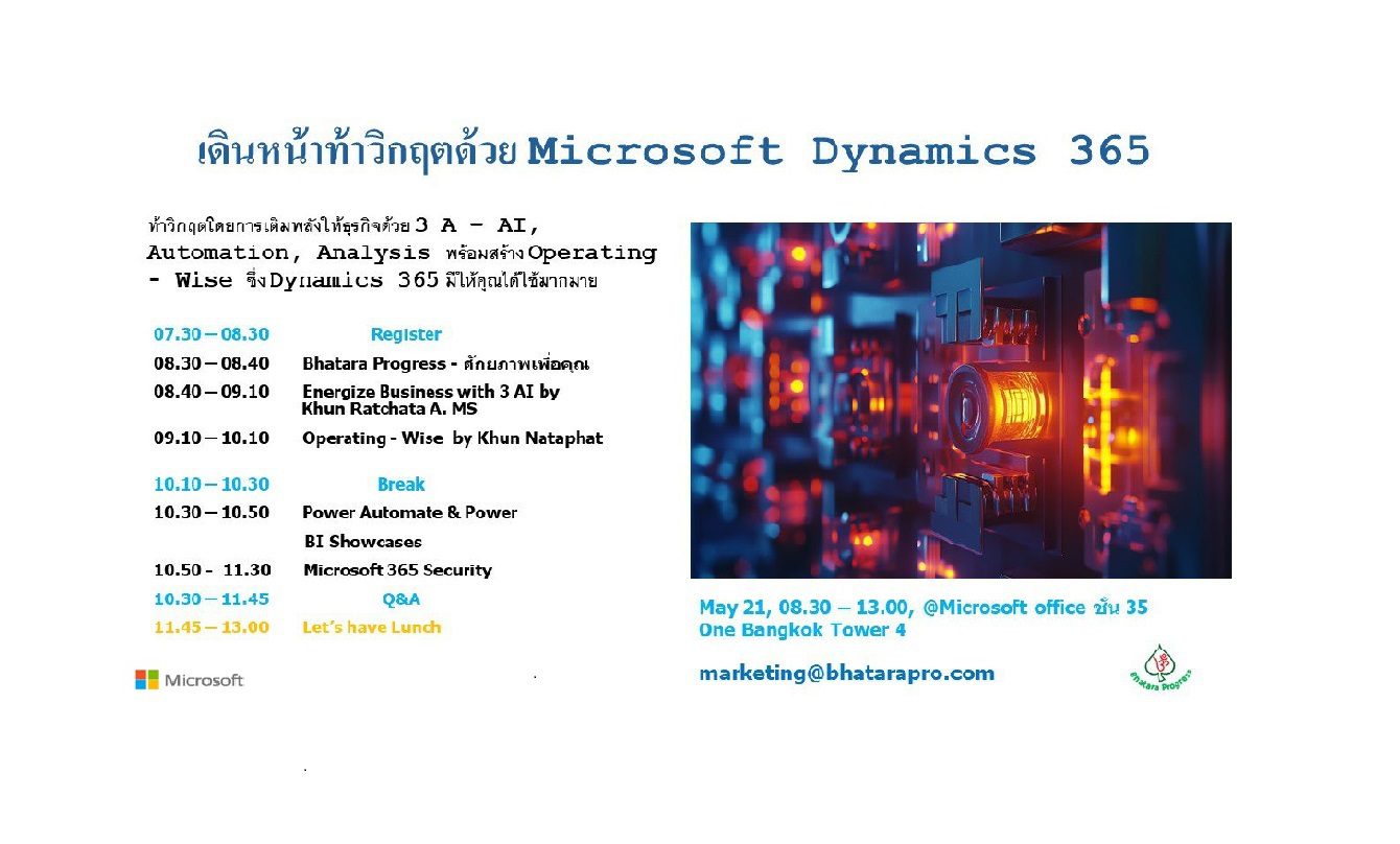 ฟรีสัมมนา เดินหน้าท้าวิกฤตด้วย Microsoft Dynamics 365