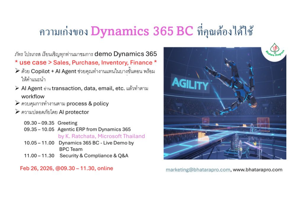 Free seminar ความเก่งของ Dynamics 365 BC ที่คุณต้องได้ใช้ 26 Feb 26